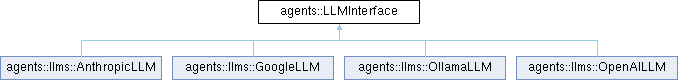 Implemented in agents::llms::AnthropicLLM, agents::llms::GoogleLLM, agents::llms::OllamaLLM, and agents::llms::OpenAILLM.